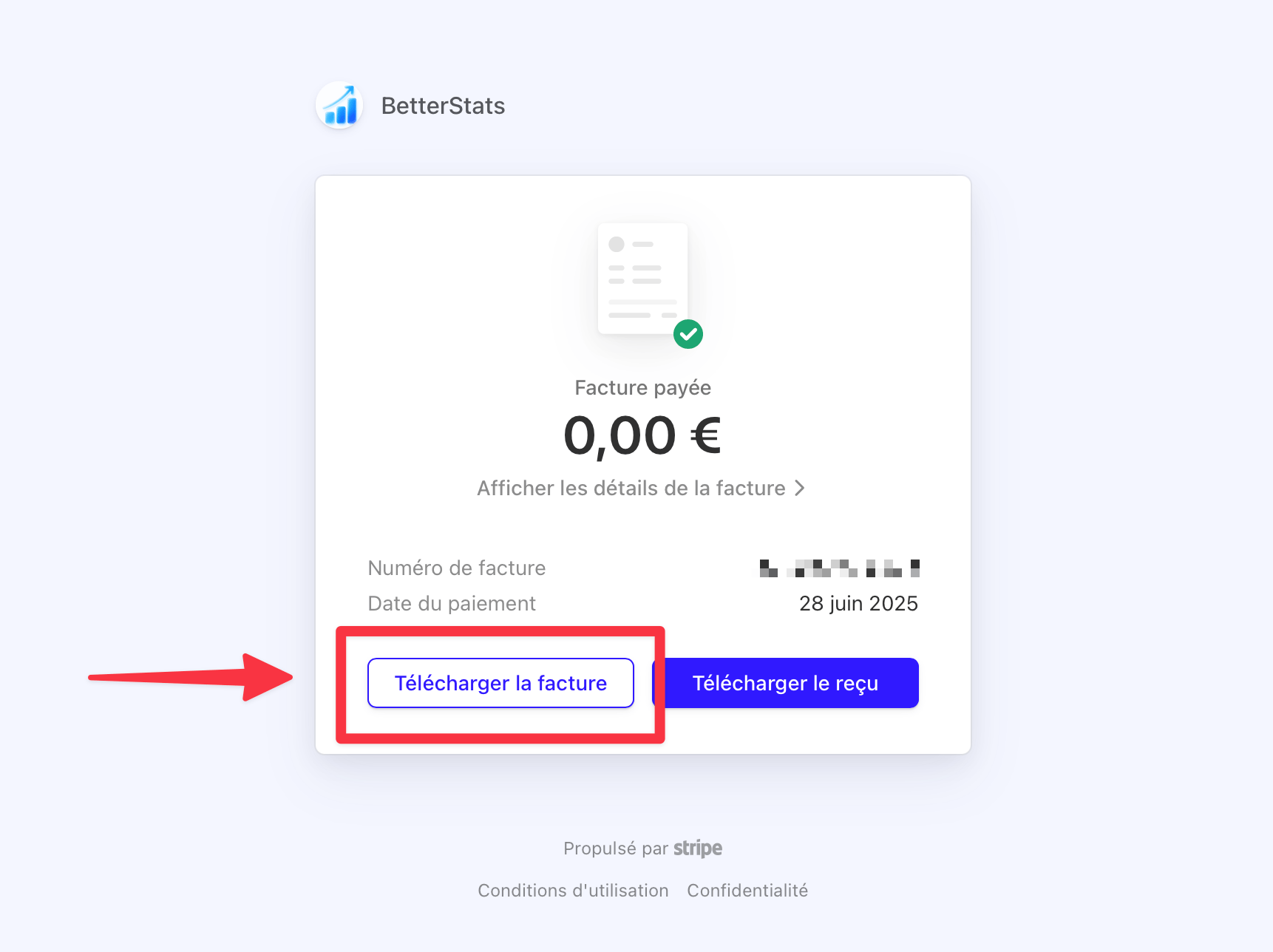 Comment obtenir sa facture BetterStats