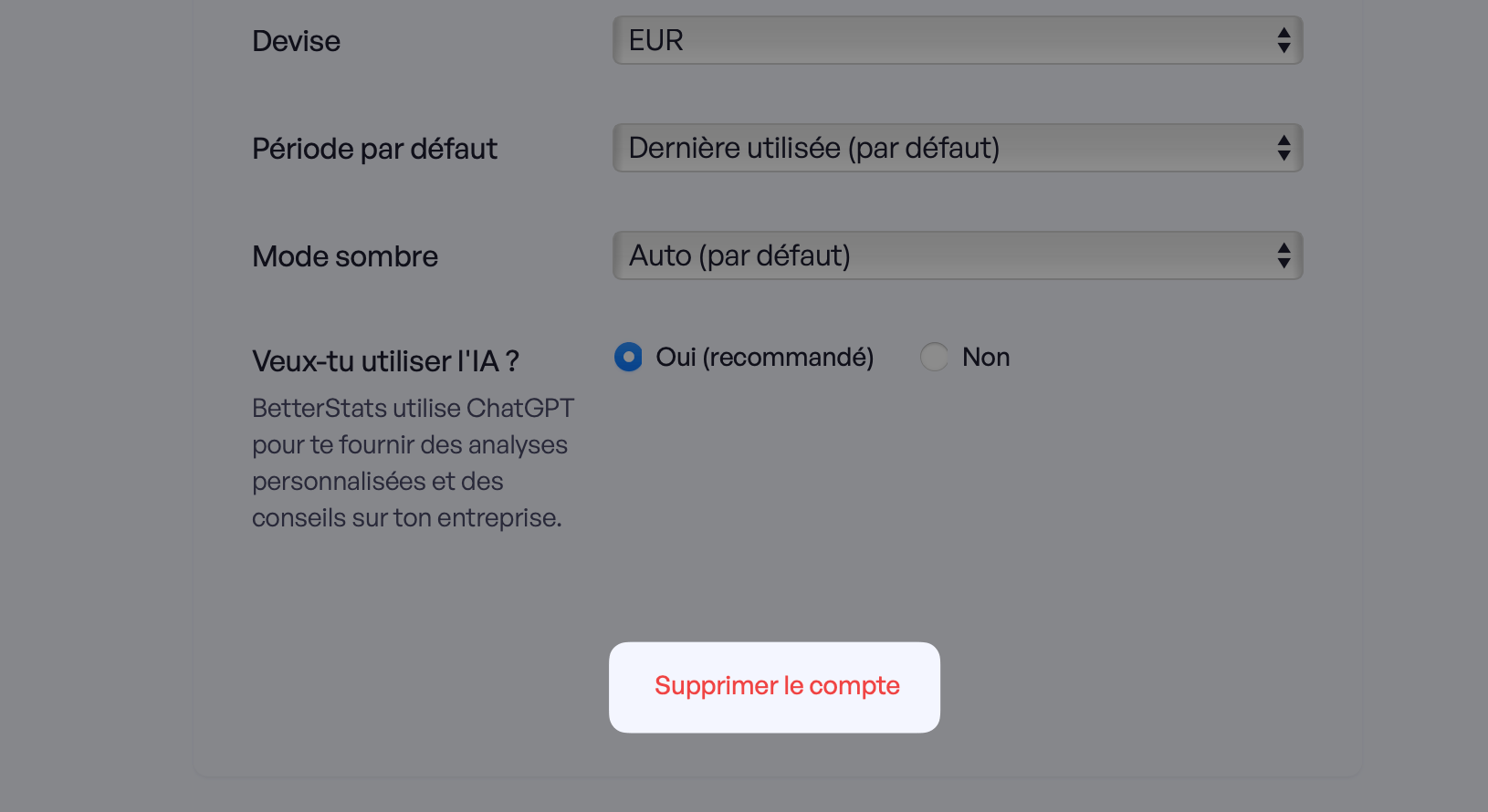 Attention : une fois ton compte supprimé, personne ne pourra le récupérer. Si tu veux recommencer à utiliser BetterStats, il faudra te créer un nouveau compte.
