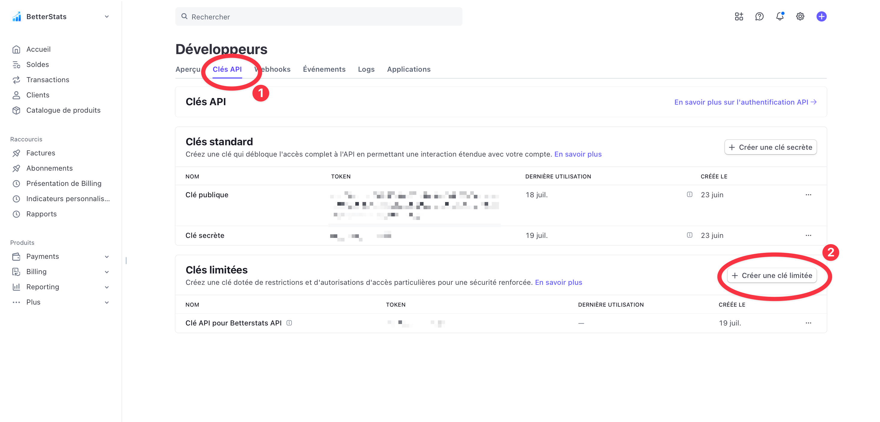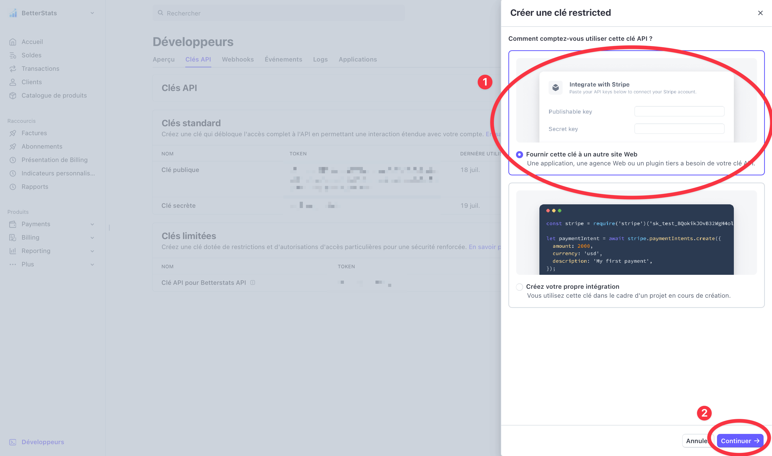 Comment connecter un compte Stripe à BetterStats avec les clés API